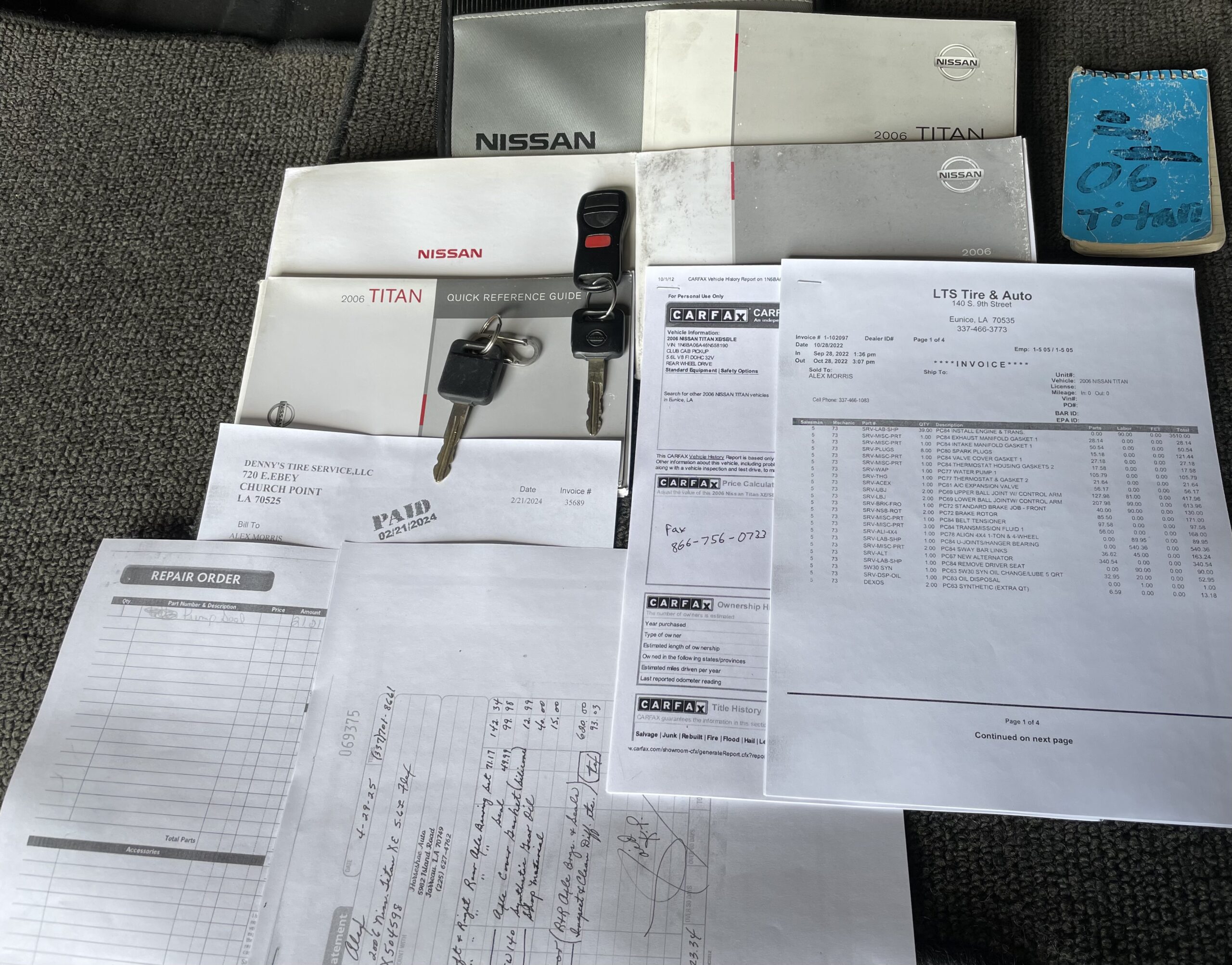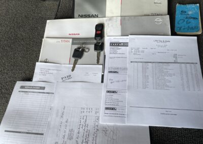 I purchased this truck in 2010 with 50,000 and maintained it accordingly. I have a spiral notebook which will go with the sale documenting everything from oil changes to new tires, to wiper blades and everything in between. All receipts of all documentation kept will come on a flash drive sold with the truck. Any questions pertaining to specific matters available upon request. Original manuals and books from Nissan included. Two ignition keys included and one working remote/fob.